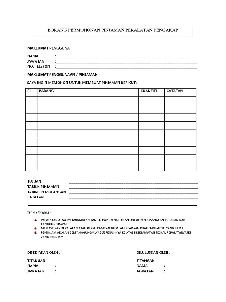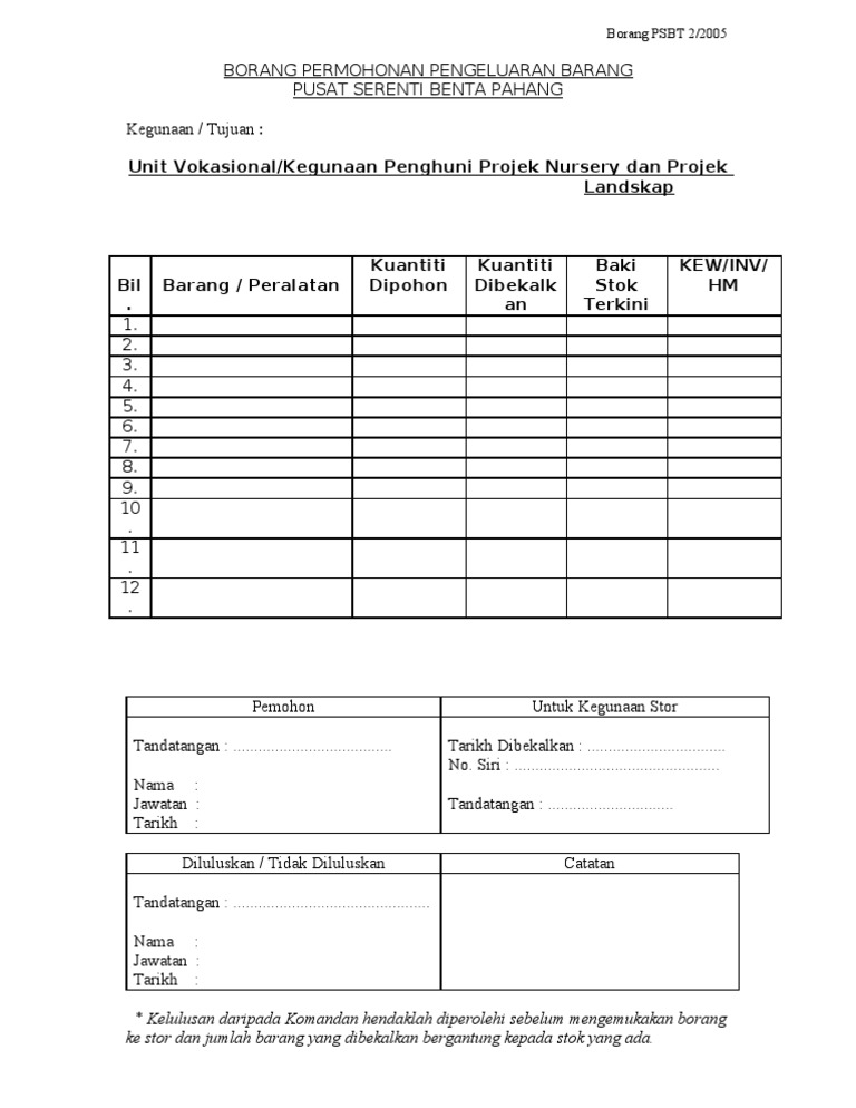 Contoh Borang Pengambilan Barang